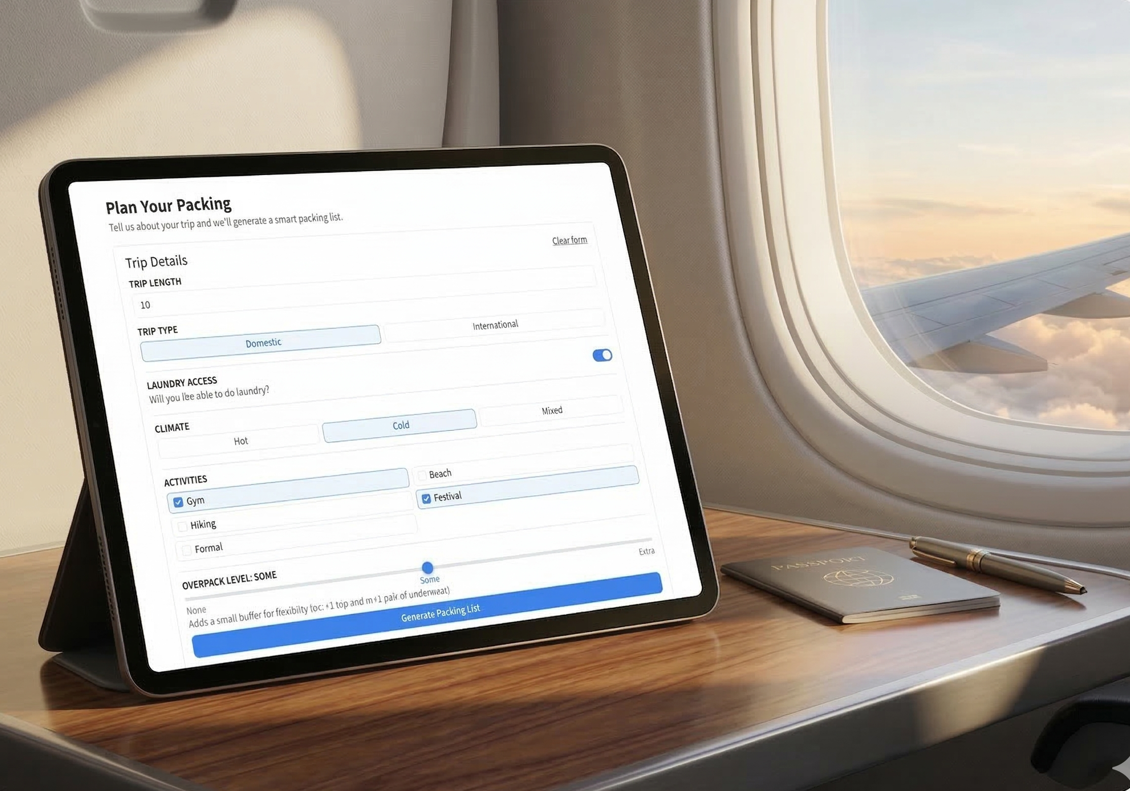A smart packing list generator built around how people actually travel